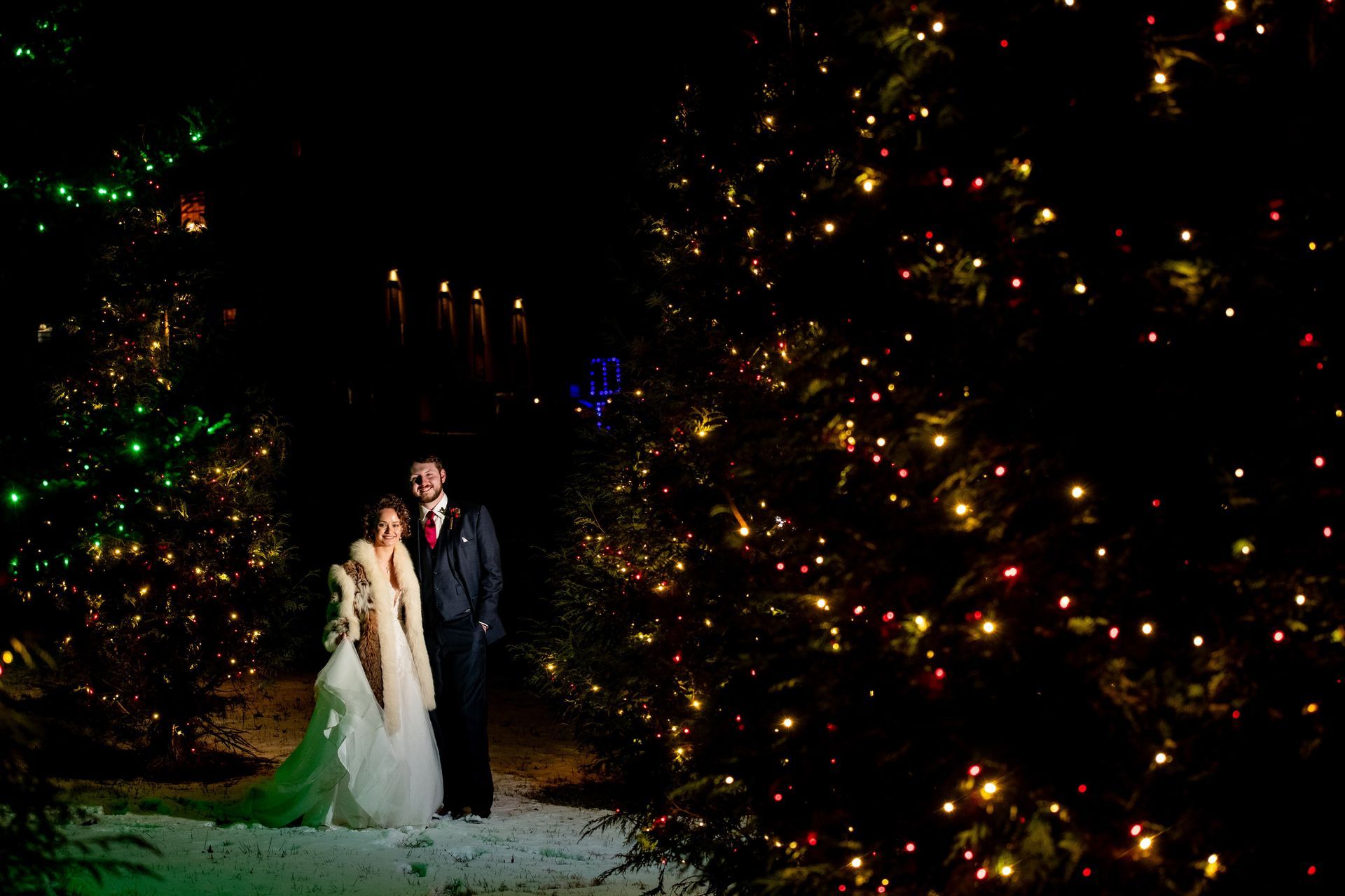 Fur capes, fuzzy mittens, and cozy boots can add a playful touch to your photos while keeping your bridesmaids warm during those outdoor photos. If your wedding month is December, you and your guests will be treated to all the spectacular Christmas decor on the estate. Don’t forget to add a campfire to your celebration to provide a warm ambience for your guests!