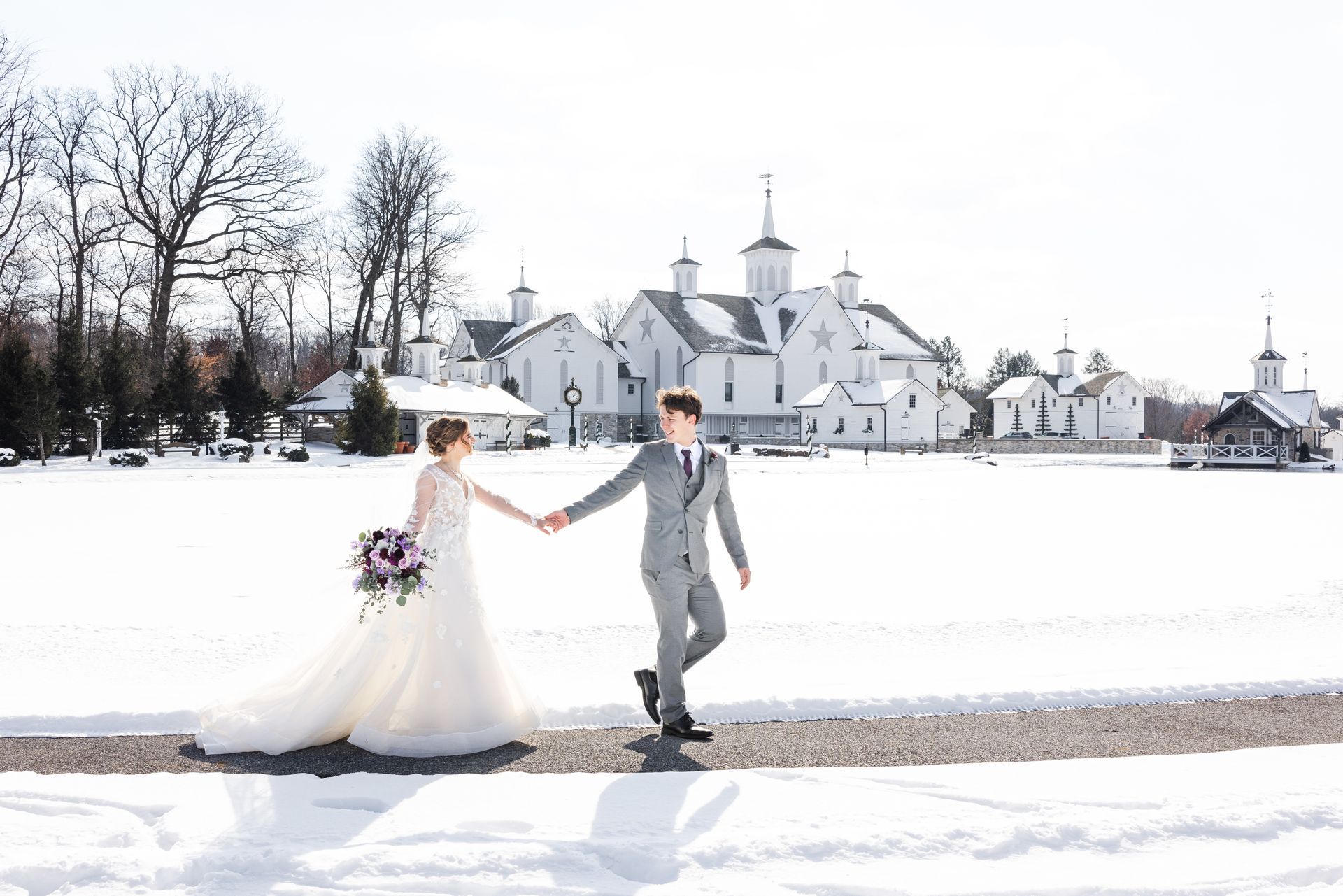 Pennsylvania is one of the rare places you can enjoy the beauty of all four seasons at the height of their glory. Even in the middle of winter, Stone Gables provides the perfect backdrop for a romantic wedding. The wintry photo-ops are endless: snow sprinkled on the pines in the Pine Tunnel at Ironstone Ranch; the reflection of the Solarium lights on the shimmering snow; or the grand spires of the Star Barn towering above the frozen surface of Liberty Lake.