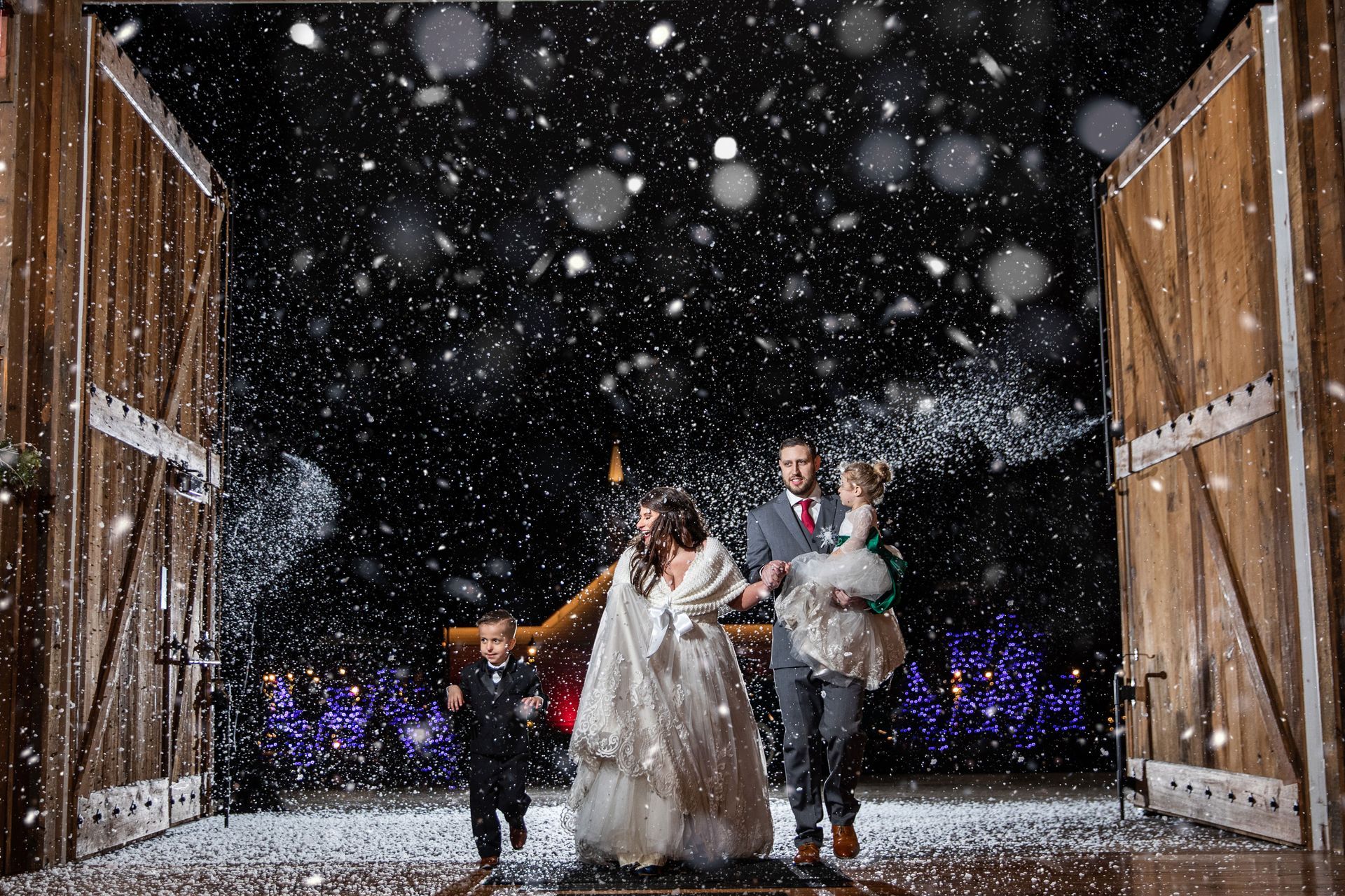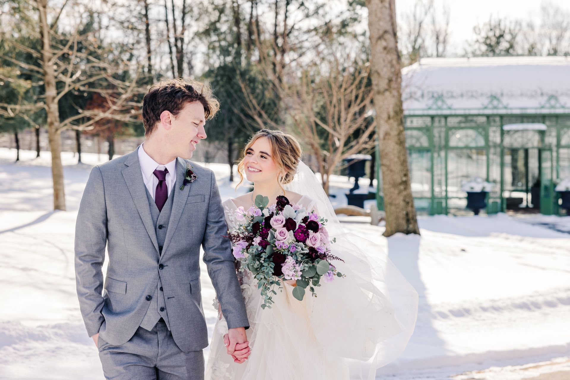 Couples who embrace the chill of the season are warmed by the presence of their family and friends as they celebrate their wedding day amongst the beautiful snow-covered settings of Stone Gables Estate.