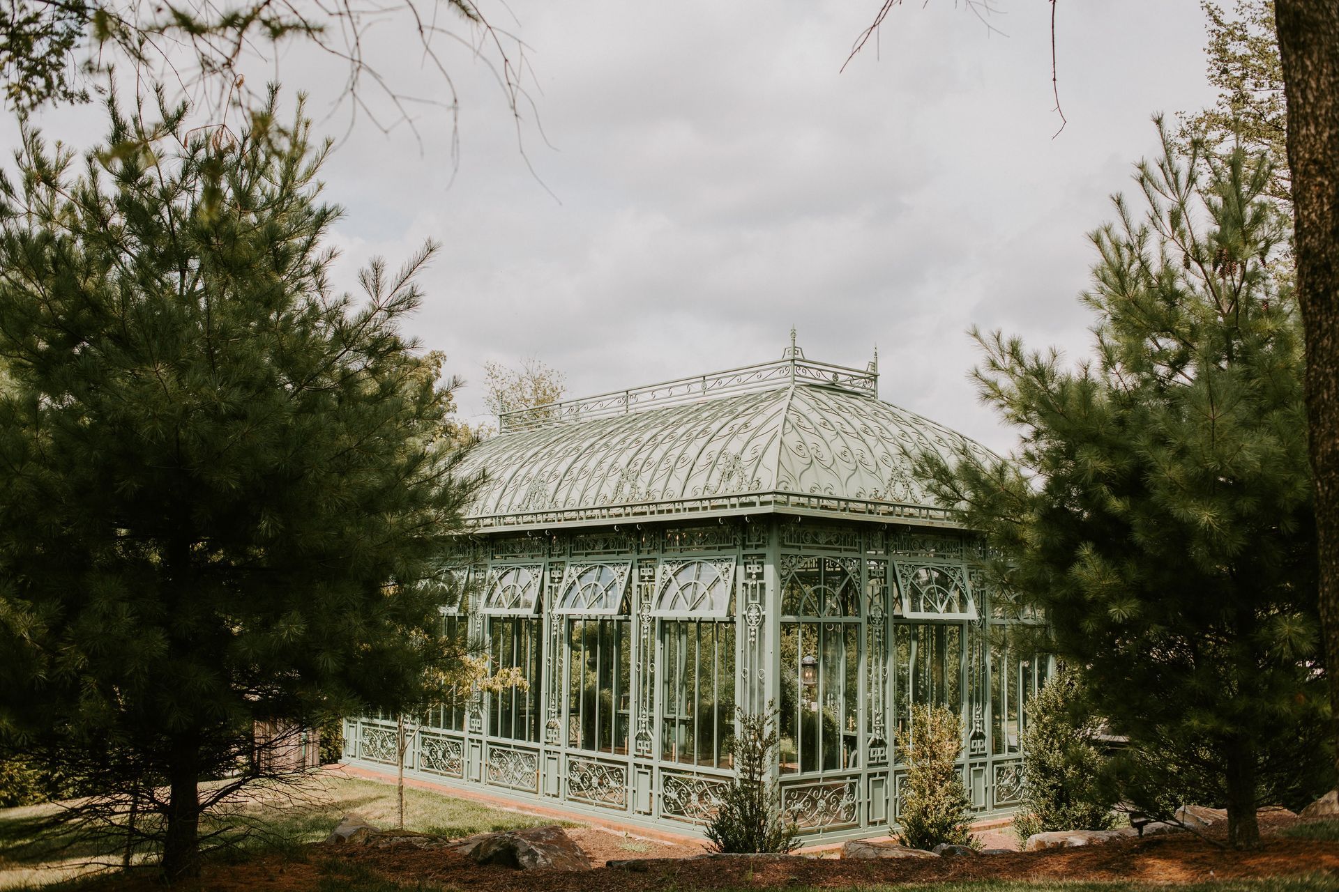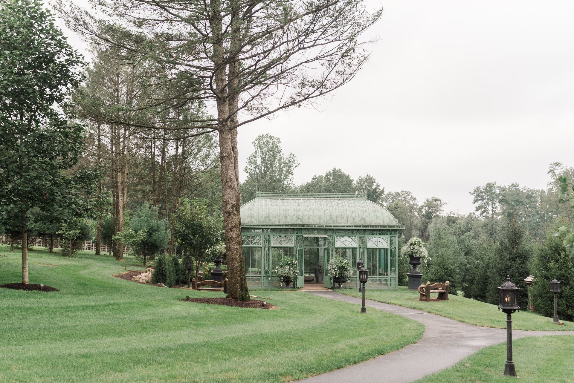 Tucked away in a serene grove of evergreens, flowering dogwoods, and redbuds, The Solarium in The Peaceful Pines is perhaps the most romantic space on the property. This intimate location is ideal for a cozy rehearsal dinner, bridal brunch, or small family gathering of up to 24 guests. At night, the surrounding trees are beautifully up-lit, creating a magical glow that makes this hidden treasure a captivating backdrop for any special occasion, for golden hour photos or private last dance.