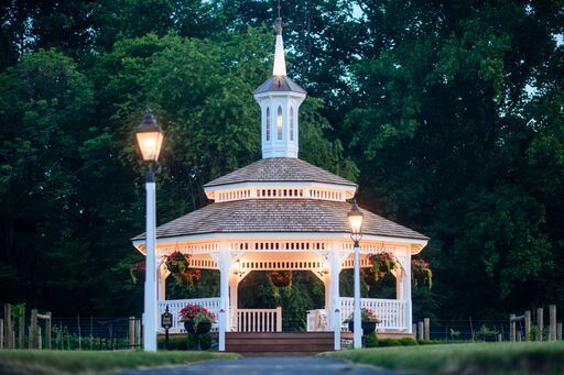 Romantic and timeless, the Victorian Gazebo in the Orchard is set among over 150 fruit trees, and surrounded by seasonal blooms, and landscaped greenery, the space is ideal for both intimate gatherings and grand celebrations. The work has been done for you, with all of nature's beauty surrounding this ceremony site. As the sun sets, the ambiance only deepens, with nighttime garden lighting and the peaceful sounds of nature.