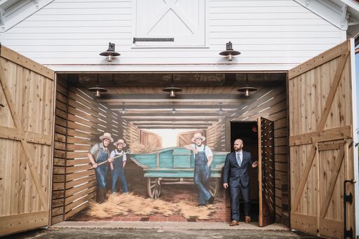 Once an auxiliary agricultural structure used for storing corn and farming equipment, The Corn Crib II has been thoughtfully reimagined while preserving much of its original 19th-century wood and character. It now serves as a fully ADA-compliant space with climate-controlled restrooms and elegant getting ready areas for bridal parties. You’ll have access to this space early in the morning, and into the late evening. Artistic murals on the exterior offer a window into the past, depicting the life and function of this original Star Barn building—blending rustic heritage with modern functionality for your vineyard wedding.