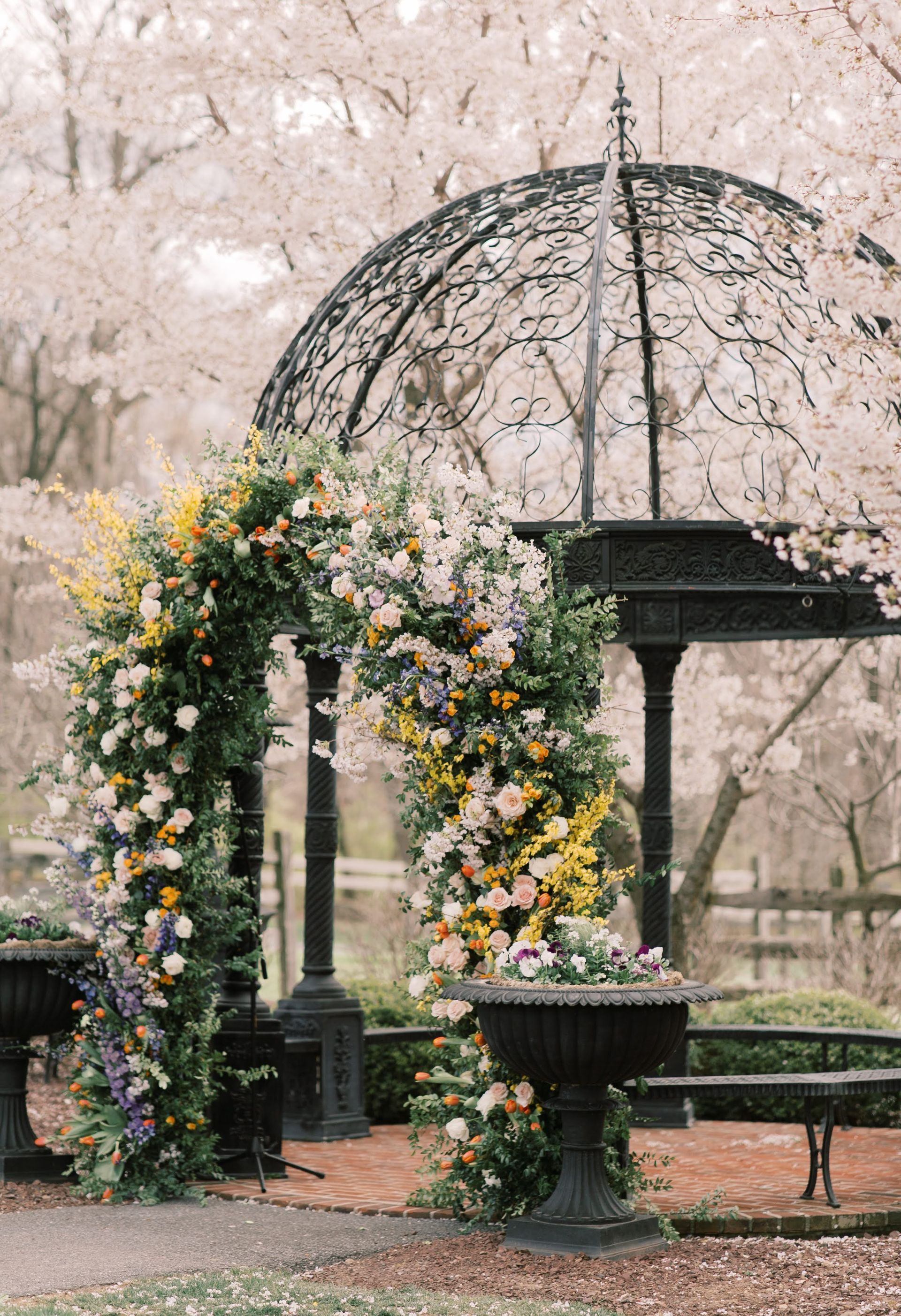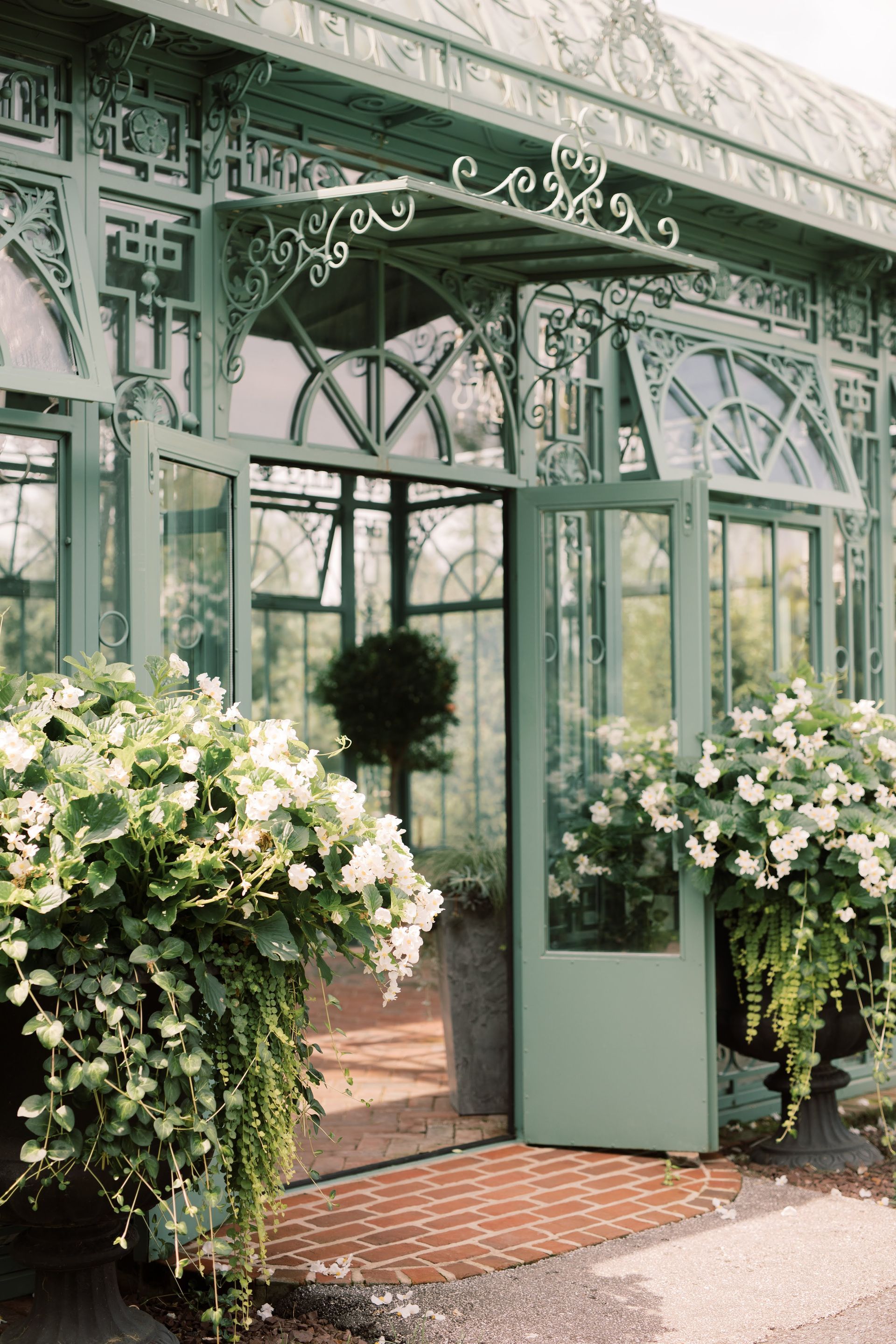 - Flowering window boxes, cast iron urns, and surrounding flowering gardens for a cascade of colors and photo ops